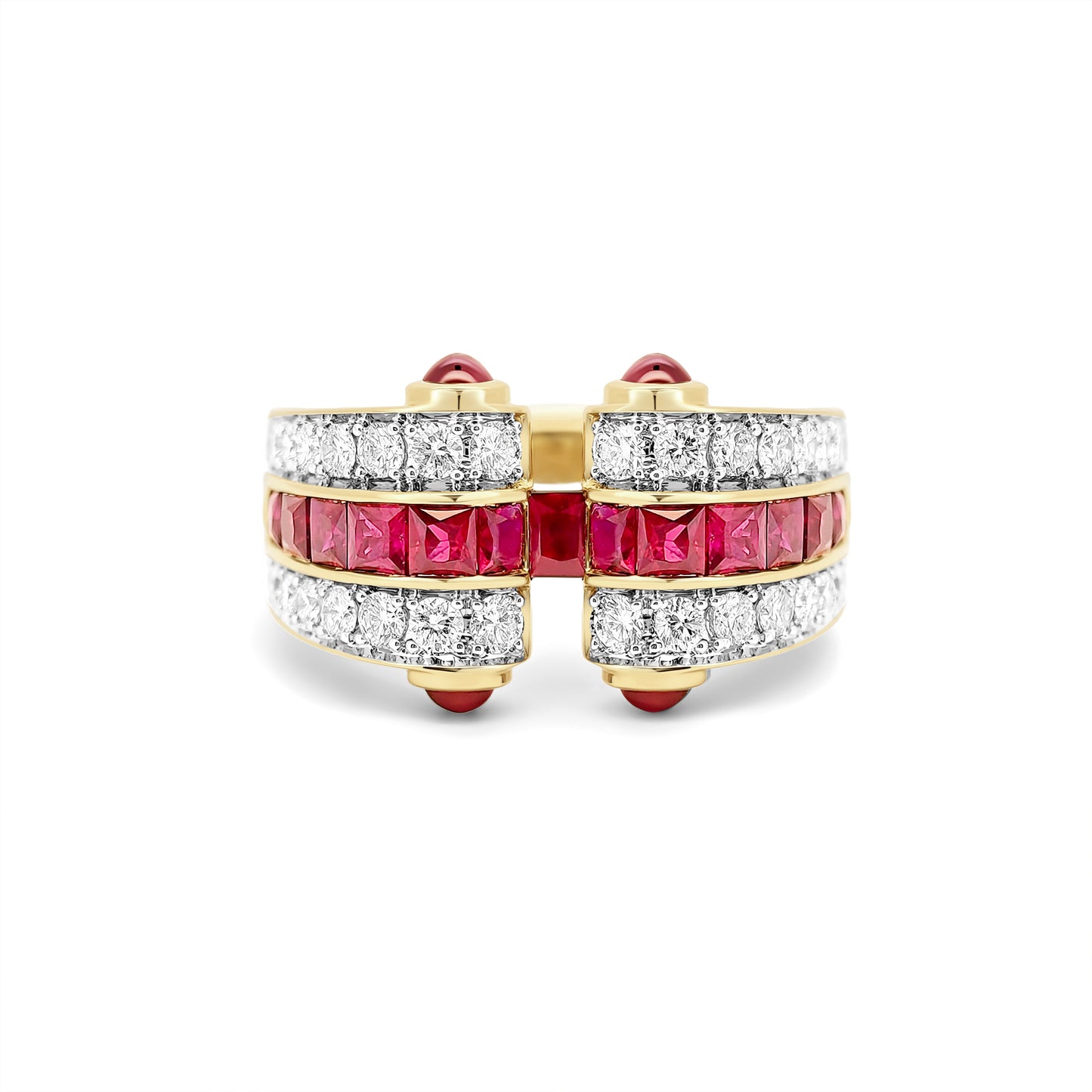 Add Radiant Ruby Architectural Ring 18 Karat Yellow Gold to the cart